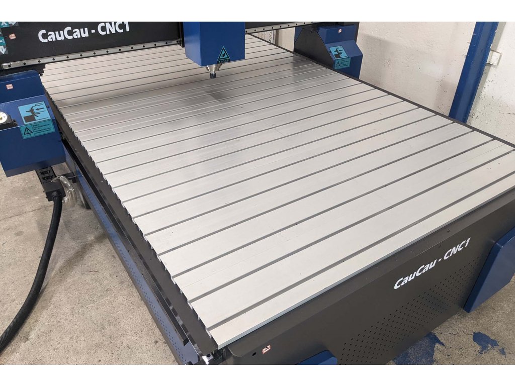 CAUCAU KOMPAS H3000BIG - 2D/3D CNC portálová frézka. Celostolová deska s T-drážkou. Obrobitelná plocha 1500x3000x200mm, rychlost 15m/min.