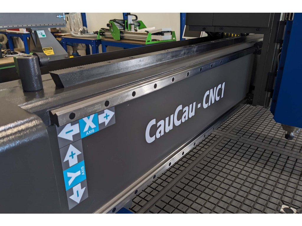 CNC frézka vhodná na zpracování velkých formátů. Celý stroj je navrhnutý pro náročný provoz v průmyslové výrobě. Kvalitní HGR 20mm prizmatické lineární vedení s pojezdy na všech osách doplněné kuličkovým vedením se šikmým hřebenem pro dosažení nejvyšší přesnosti i při vysoké rychlosti 15m/min. Díky použitým motorům Nema34 – 12Nm má stroj dostatečný výkon i na opracování tvrdých materiálů. Stroj je v základní sestavě osazený 3500W vřetenem s maximálními otáčkami 24000 ot/min. Osy X a Y jsou vybaveny indukčními koncovými spínači, které slouží zároveň i k zaměření strojní nuly. Stroj je vybavený automatickým odměřováním délky nástroje.