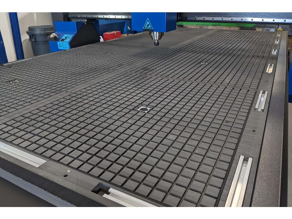- Obráběcí plocha osazena plnorozměrným vakuovým stolem a vývěvou 5kW.