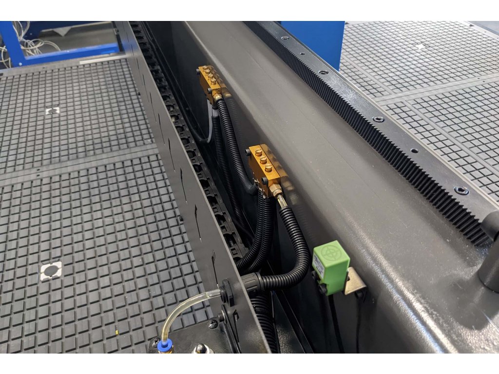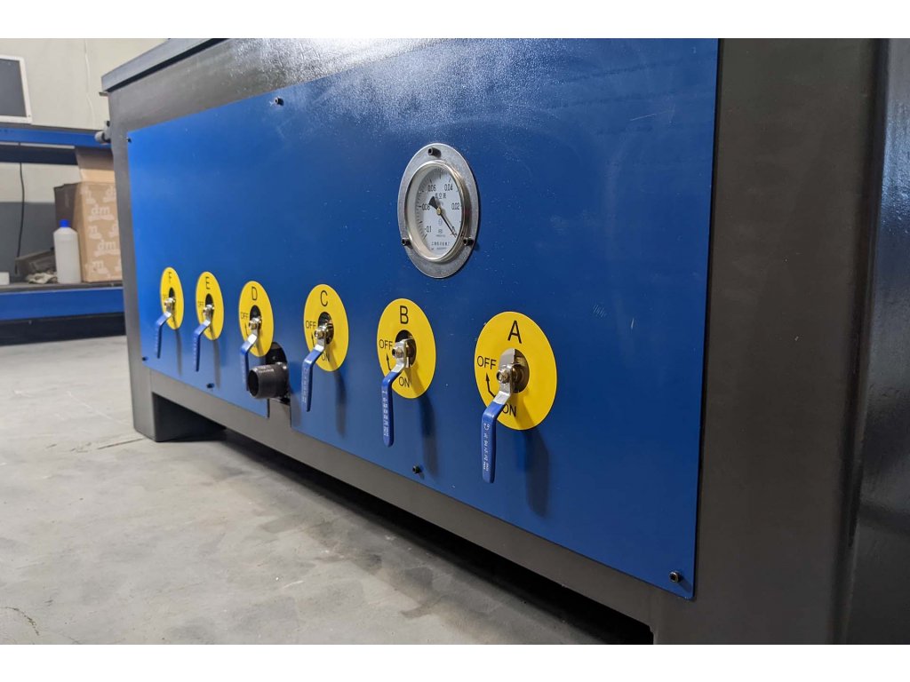 - Plnorozměrový vakuový stůl s T-drážkovou podporou a 5kW vývěva