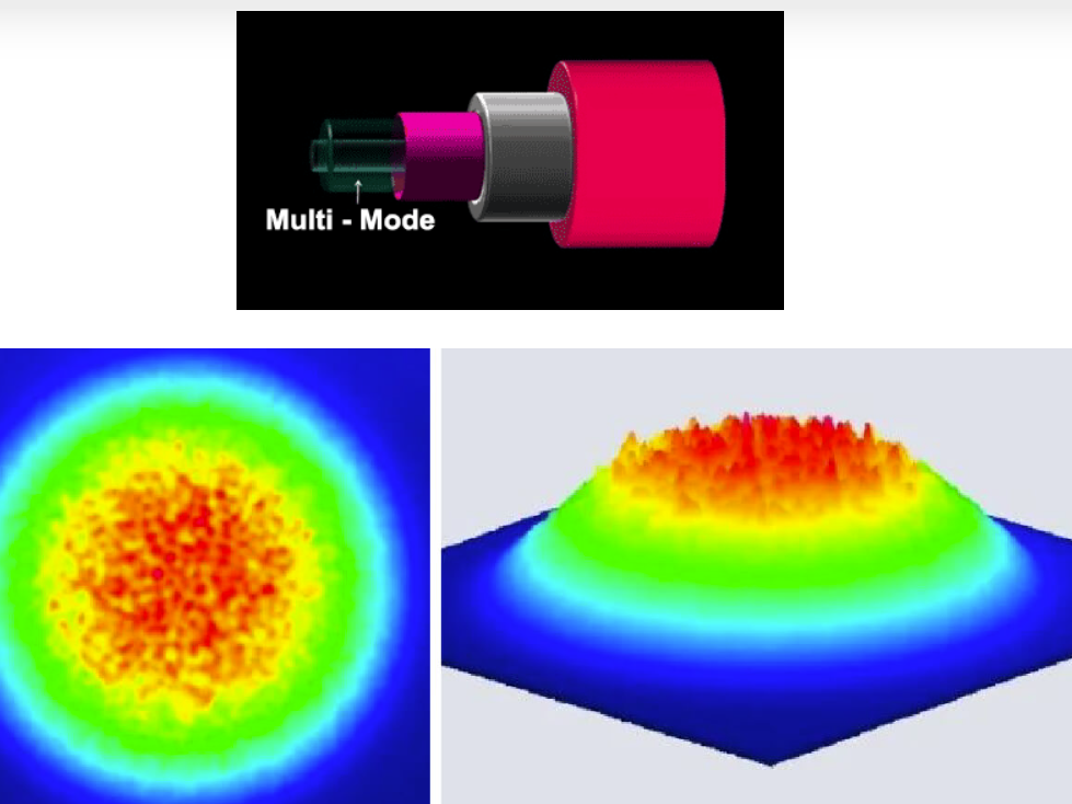 - Výhody pulsního multimode laseru - paprsek je rozptýlen do většího bodu (shluku) a tím dochází k efektivnějšímu účinku při čištění při zachování výkonu